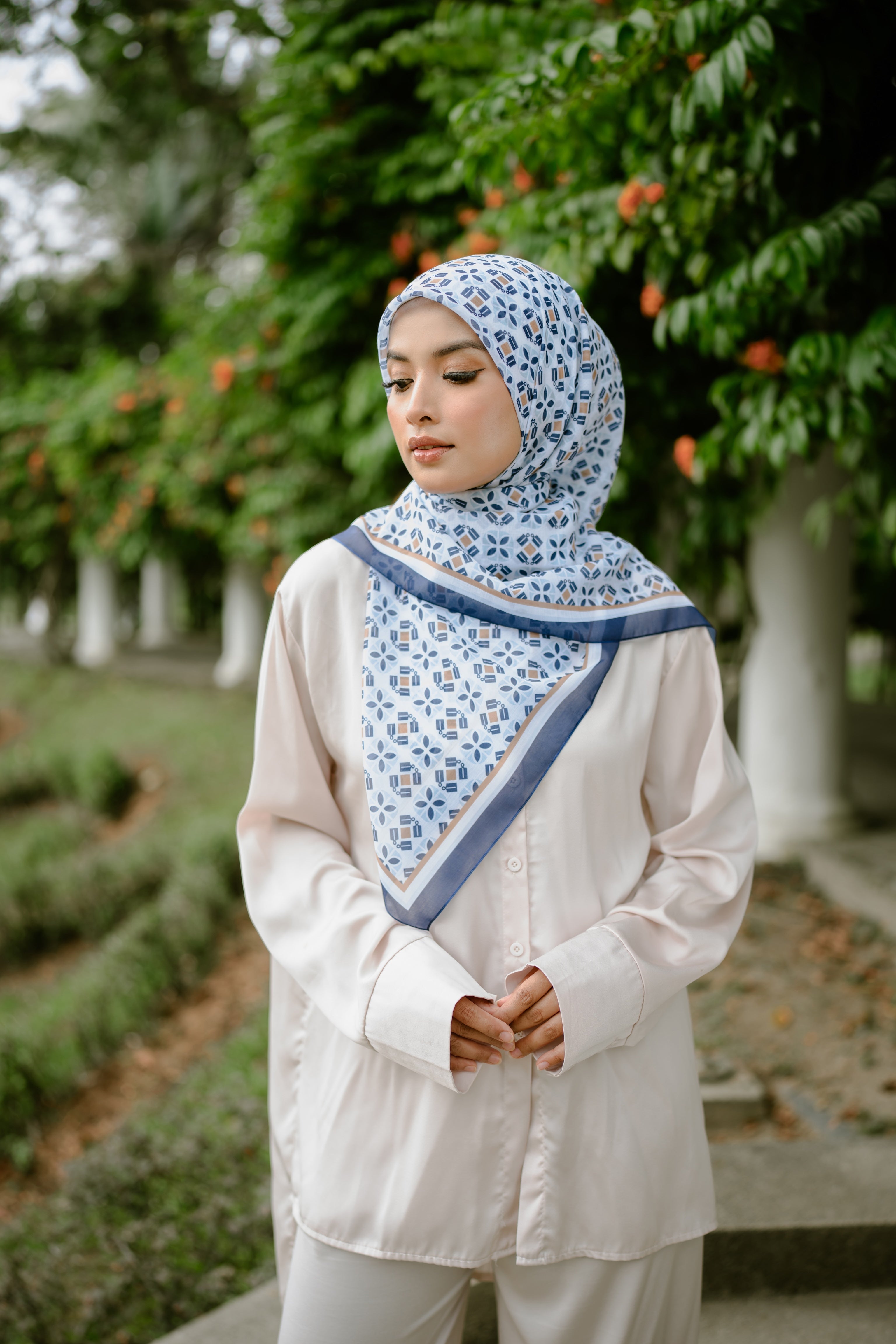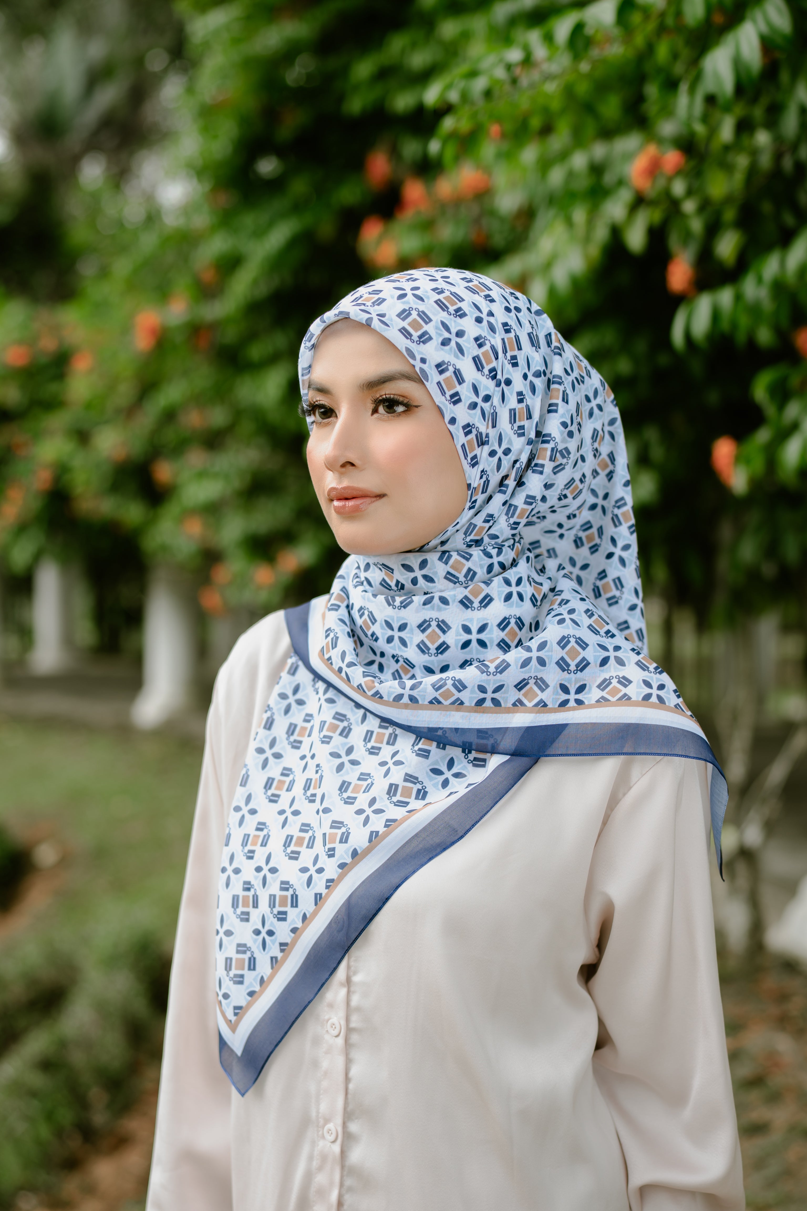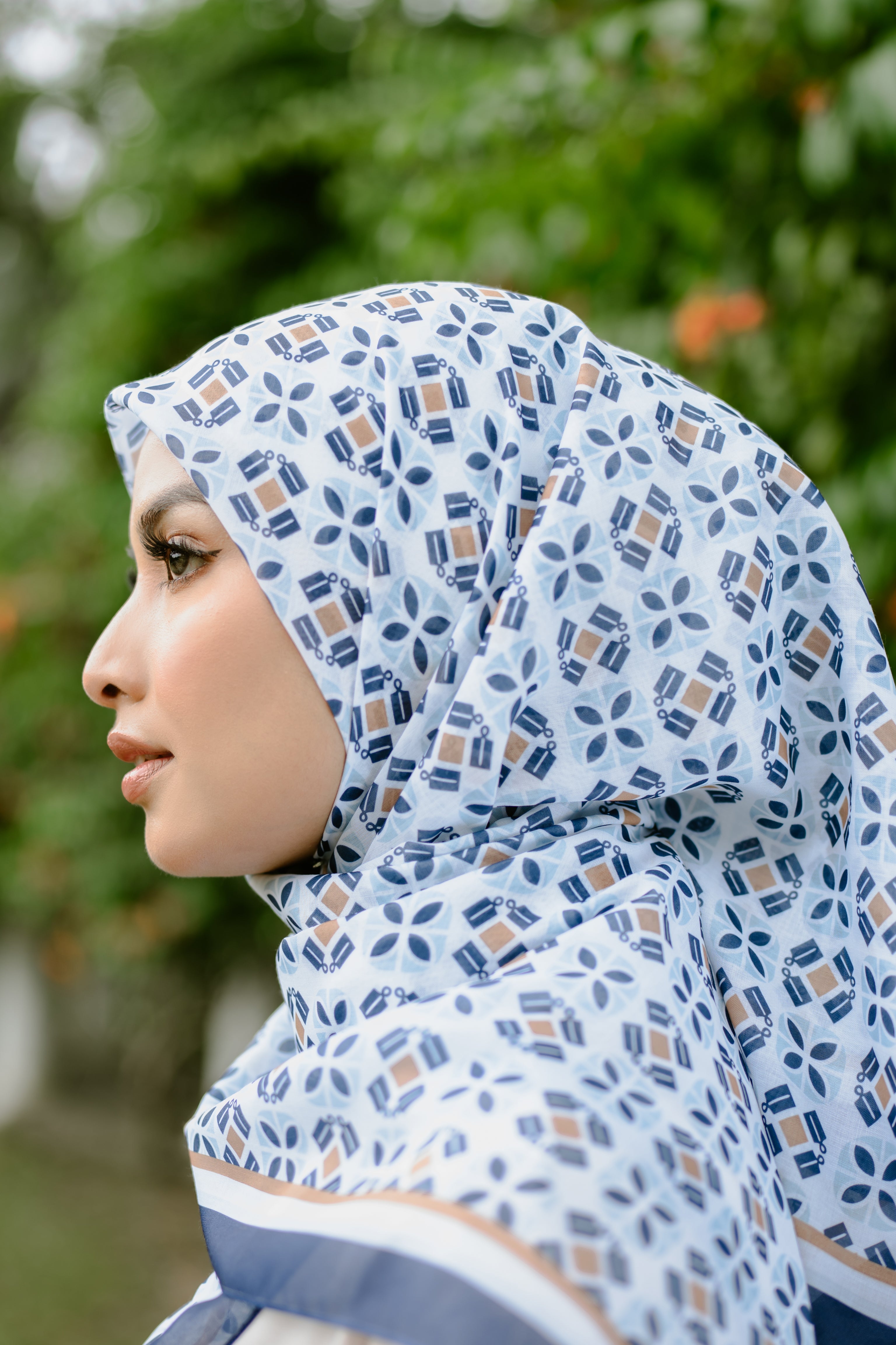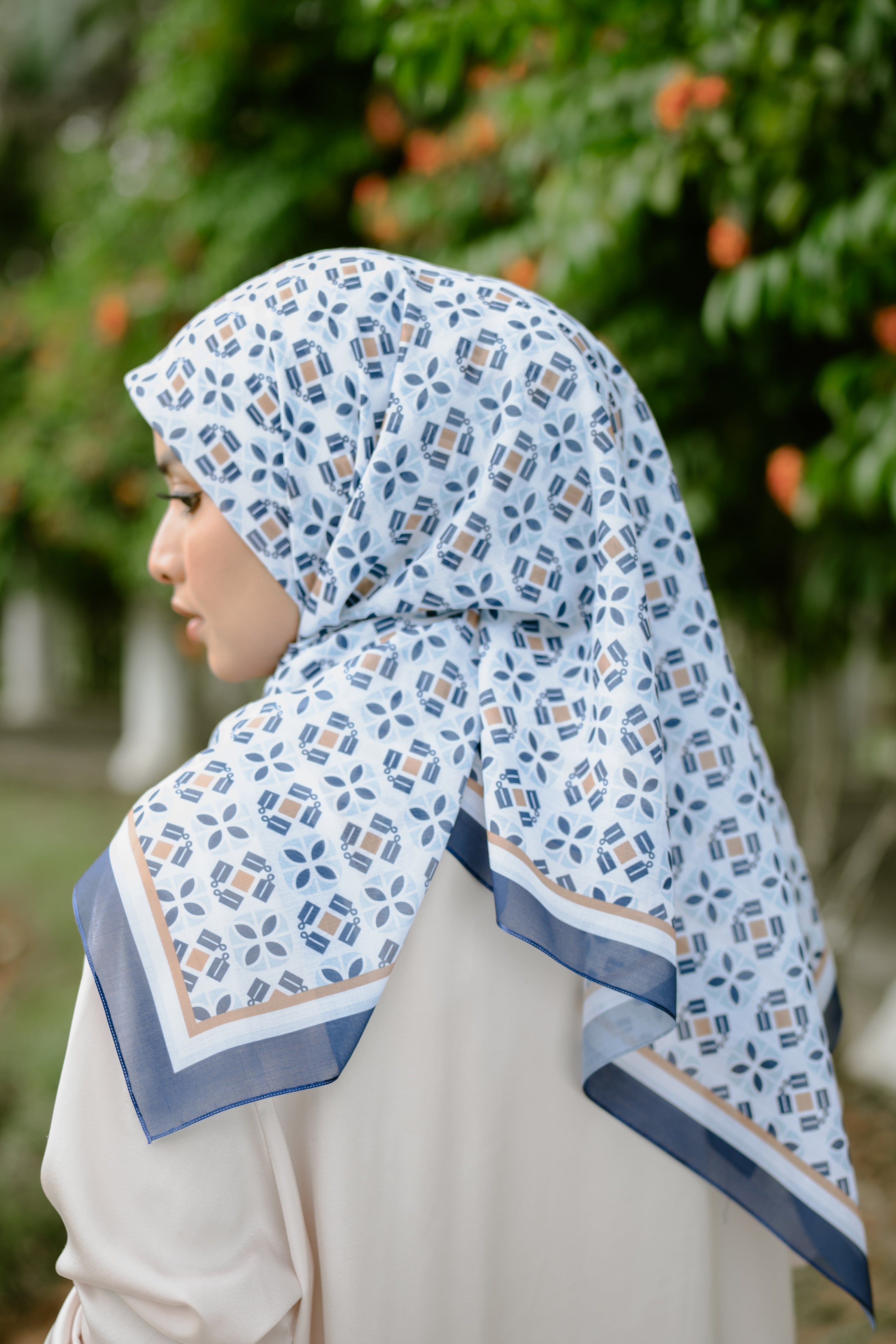 The calm blue and white tones of Hening represent clarity, honesty, and truth. For those who move with intention, speak with kindness, and make space for others to bloom too.Material: Cotton voileSize: 115cm x 115cm