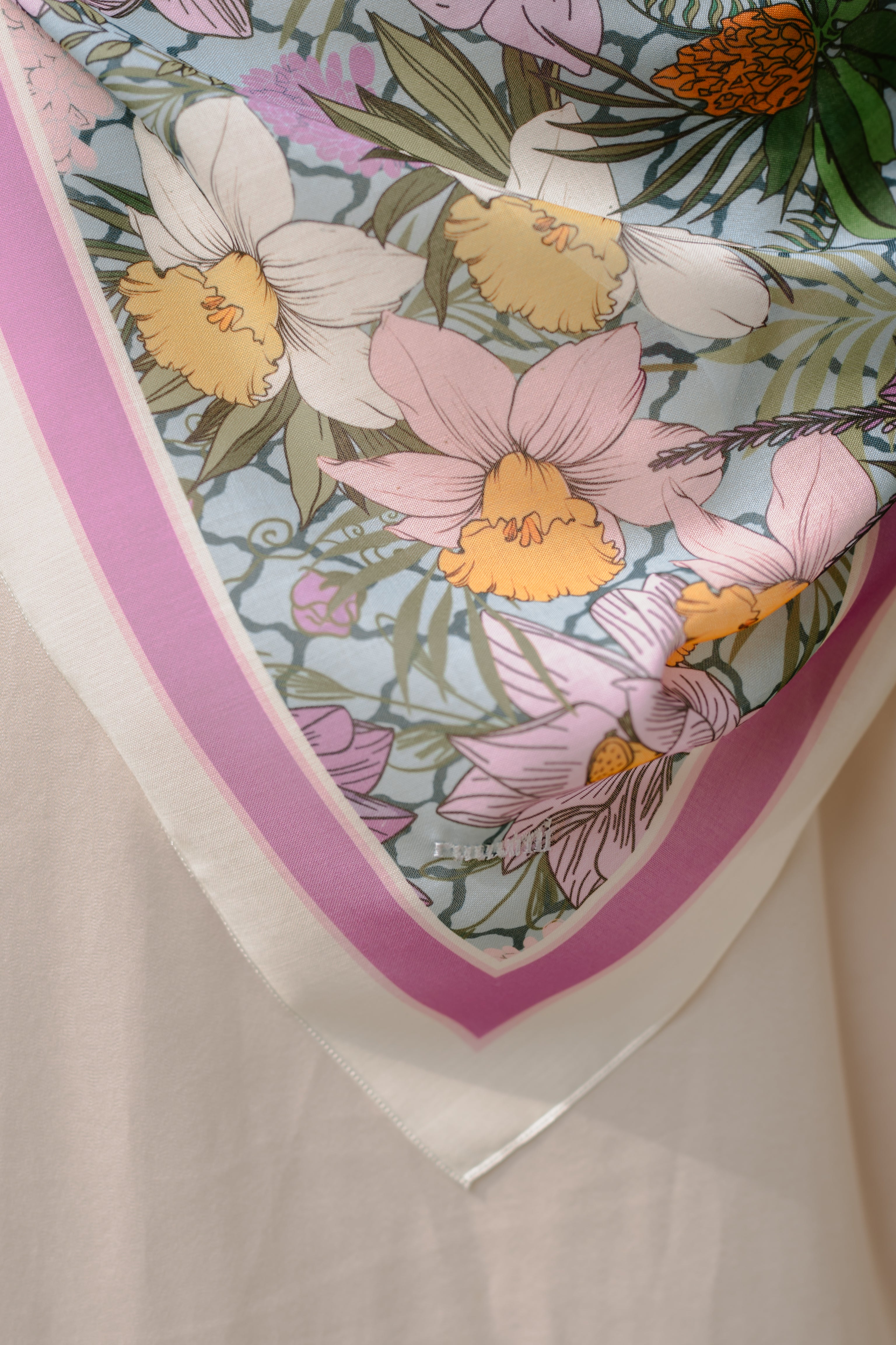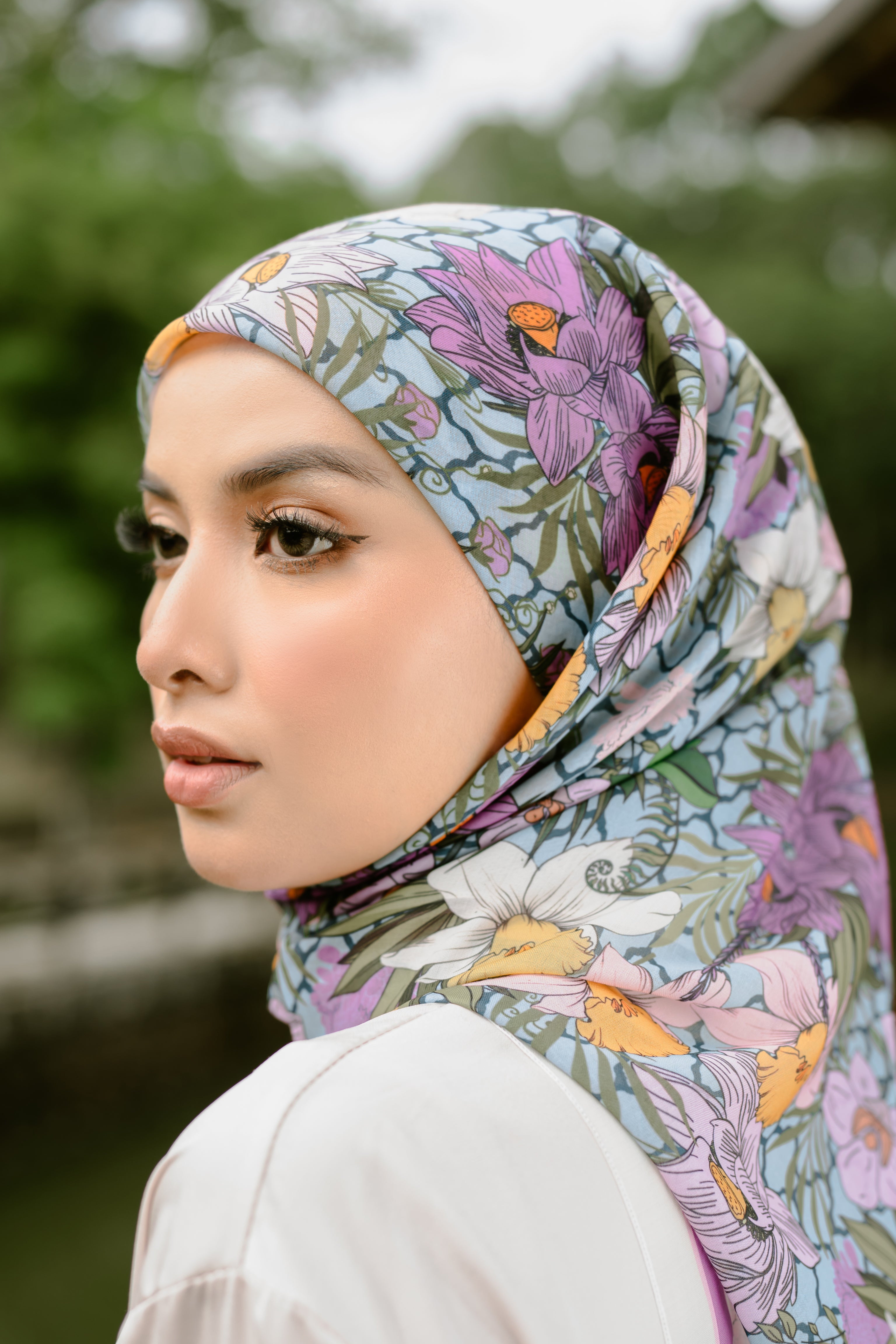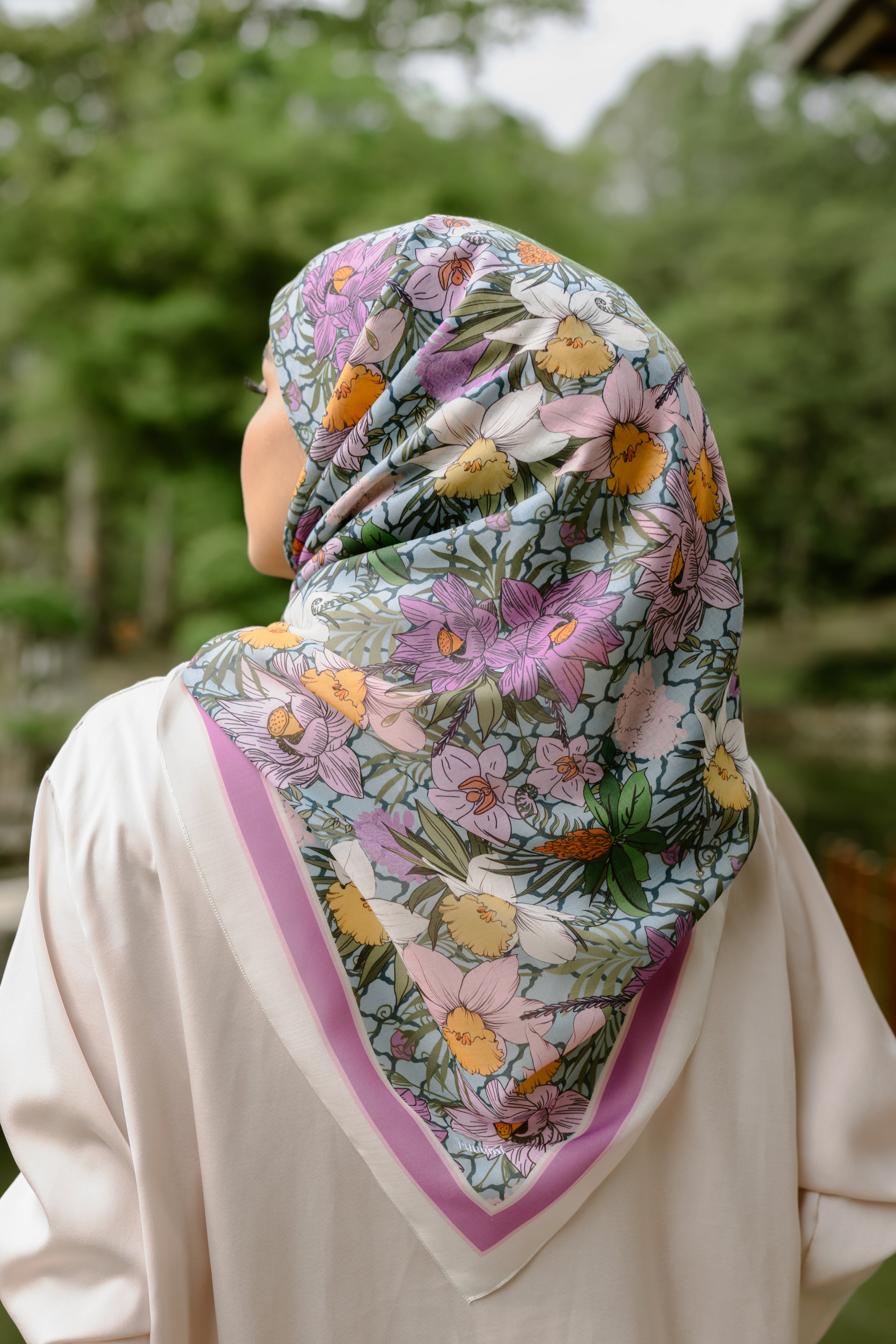 Kelopak is a play of turquoise florals with quiet movement — made for those who carry warmth and complexity in equal measure. It's playful, yet grounded. Effortless, but intentional.Material: Cotton voileSize: 115cm x 115cm