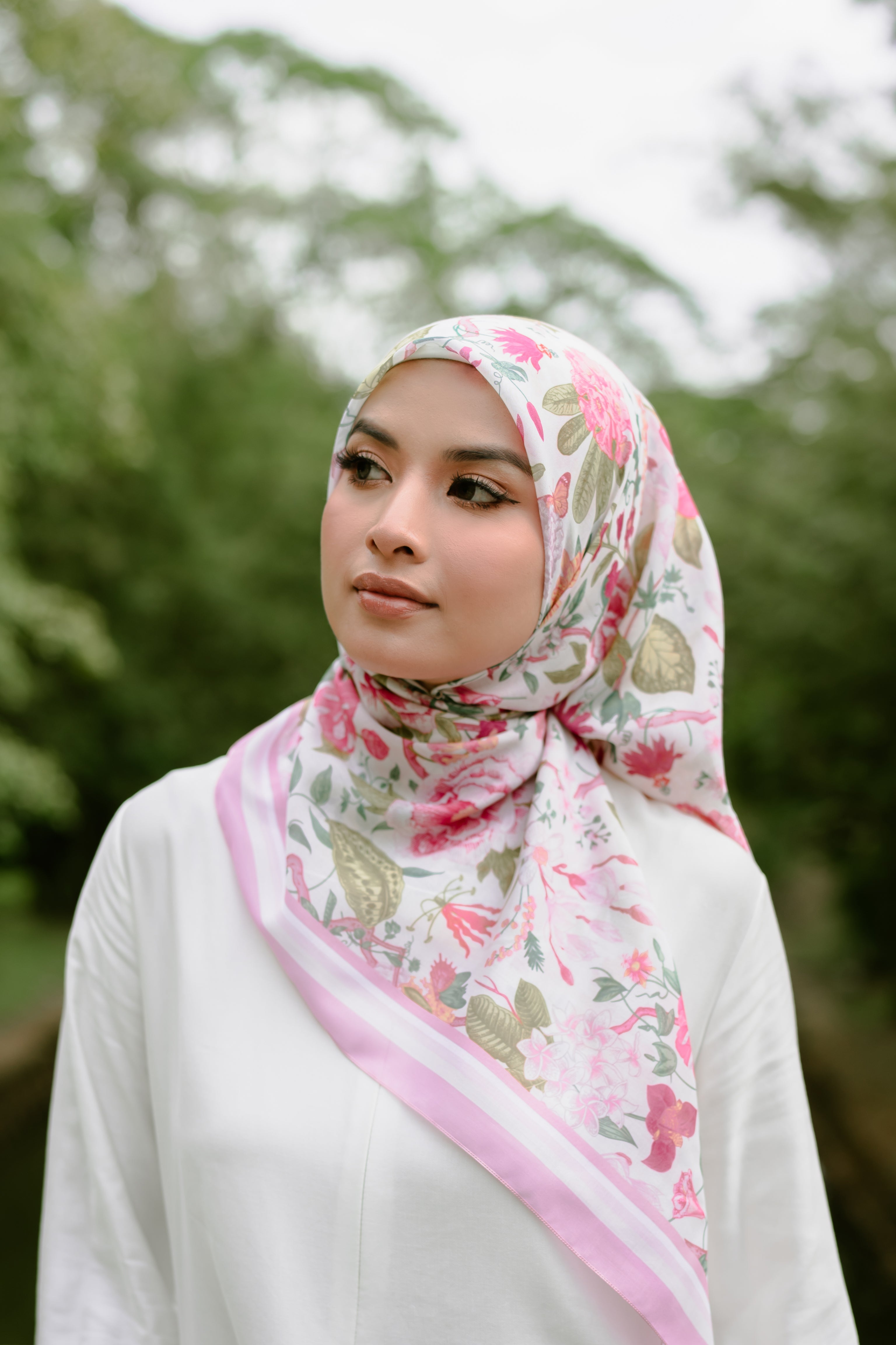Pink florals in Tunas evoke newness — a bud just starting to open. It represents beginnings, gentle courage, and all the small steps that count. A tudung for the version of you that’s still growing.Material: Cotton voileSize: 115cm x 115cm